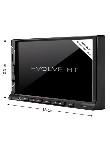Con Multimedia Evolve Fit S vas a poder controlar tu auto como nunca antes. Moderno, incluye táctil multimedia además de sus entradas USB, Micro SD, Aux y modo Bluetooth. Incluye también entrada p/cámara marcha atrás.