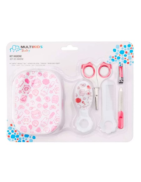 Con el Kit de Higiene MULTIKIDS BABY estarás completamente preparado para cuidar la higiene de tu bebé. Dispone de cortaúñas y tijeras con filos redondeados ideales para las uñas pequeñas del bebé. Además. viene con papel de lija. para ayudar a terminar el corte de uñas. ¡y un peine y un cepillo para el cabello para que esté siempre hermosa y bien arreglada!