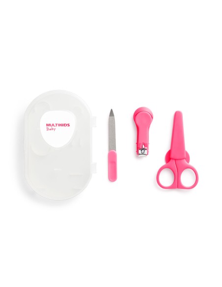 La línea PERFECT BABY de Multikids fue desarrollada para ayudarte a cuidar a tu bebé y dejarlo siempre ordenado. El kit de cuidado en el estuche incluye un par de tijeras. un cortador y papel de lija. que dejan las uñas del bebé siempre recortadas y limpias. evitando arañazos y sufrimiento. Las tijeras vienen con una funda higiénica para protegerlas cuando no se usan y tienen puntas redondeadas que evitan accidentes Aptas para usar desde el nacimiento. Es completamente no tóxico y libre de BPA. El neceser ayuda con la organización y el transporte del hogar. al viajar o caminar.