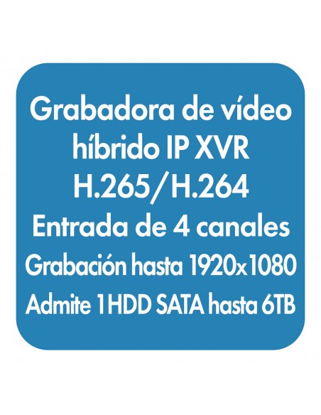 • Capacidad: Analógico: 4 x 1080P Lite@25, 4 x 720P@30 / IP: 1 x 6MP@20, 2 x 1080P@30
