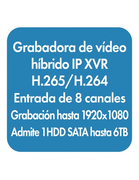 • Capacidad: Analógico: 8x 1080P Lite@15, 8x 720P @15 / IP: 1 x 6MP@20, 2 x 1080P@30