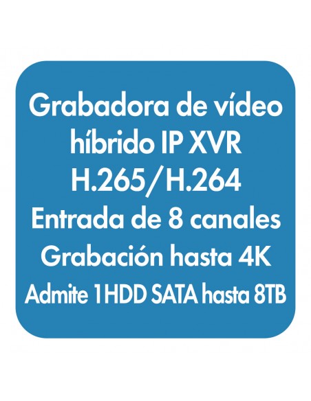 • Capacidad: Analógico: 8 x 8MP Lite@8, 8x 5MP Lite@12, 8x 4MP Lite@15, 8x 1080P@15 / IP: 1 x 8MP@30, 2 x 4MP@30, 4 x 1080P@30