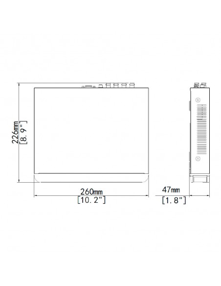 • Dimensiones (Ancho×Profundidad×Alto): 260 mm × 226 mm × 47 mm (10,2" × 8,9" × 1,8")