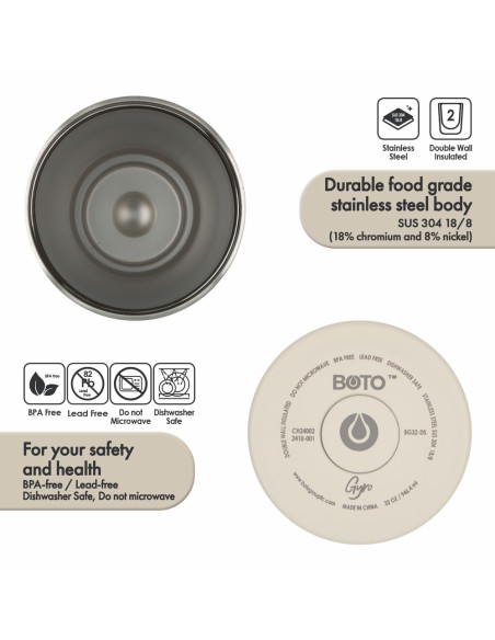 Vaso térmico BOTO Gyro con asa giratoria de 180° - Desert Sand, 32 Oz / 950 ml. (BG32-DS)