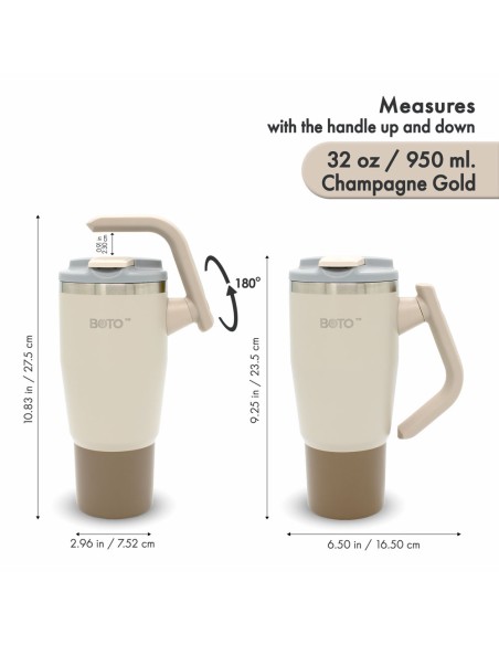 Vaso térmico BOTO Gyro con asa giratoria de 180° - Champagne Gold, 32 Oz / 950 ml. (BG32-CG)