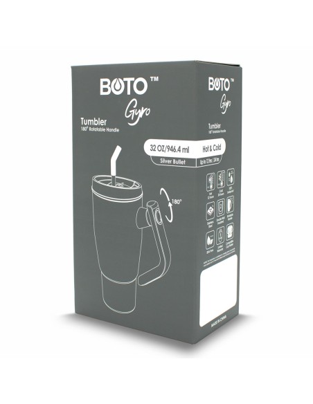 Vaso térmico BOTO Gyro con asa giratoria de 180° - Silver Bullet, 32 Oz / 950 ml. (BG32-SV)