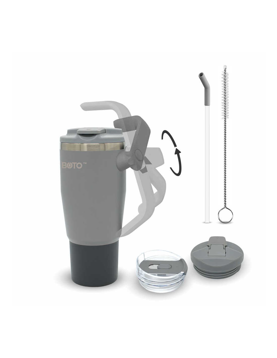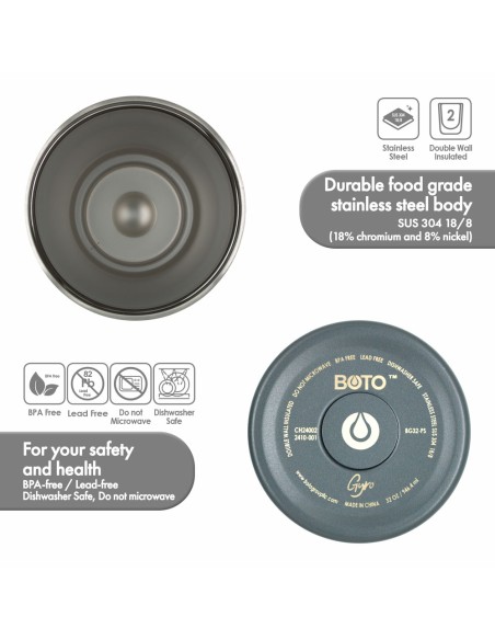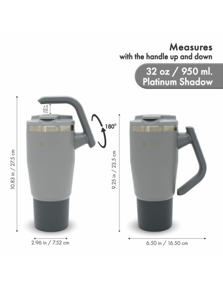 Vaso térmico BOTO Gyro con asa giratoria de 180° - Platinum Shadow, 32 Oz / 950 ml. (BG32-PS)