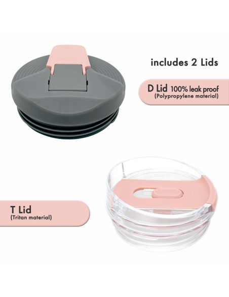 • 100% a prueba de fugas: Incluye dos tapas, alterna entre la tapa "D" (100% a prueba de fugas) y la tapa "T" con pajilla según tu preferencia.