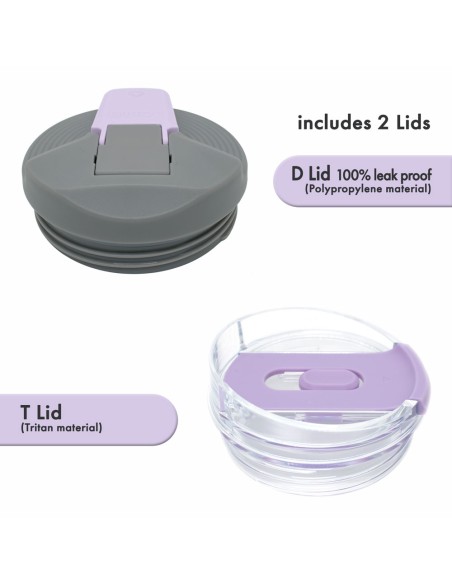 • 100% a prueba de fugas: Incluye dos tapas, alterna entre la tapa "D" (100% a prueba de fugas) y la tapa "T" con pajilla según tu preferencia.