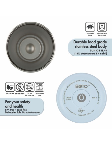 • Material: Cuerpo de acero inoxidable SUS 304 (18/8 - 18% cromo y 8% níquel), libre de BPA y plomo, para tu seguridad y salud.
