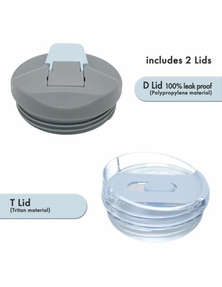 • 100% a prueba de fugas: Incluye dos tapas, alterna entre la tapa "D" (100% a prueba de fugas) y la tapa "T" con pajilla según tu preferencia.