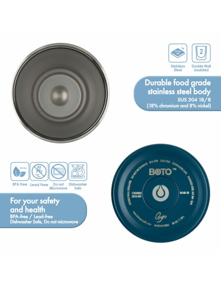 • Material: Cuerpo de acero inoxidable SUS 304 (18/8 - 18% cromo y 8% níquel), libre de BPA y plomo, para tu seguridad y salud.