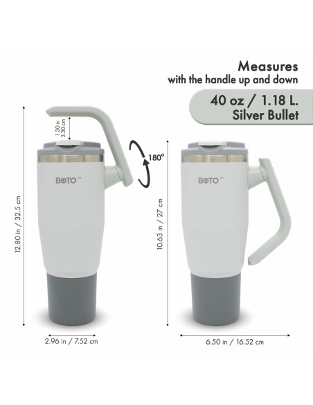 Vaso térmico BOTO Gyro con asa giratoria de 180° - Silver Bullet, 40 Oz / 1.18 L. (BG40-SV)