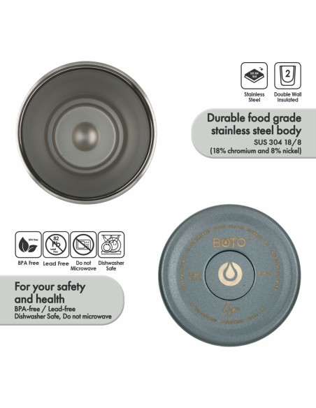 • Material: Cuerpo de acero inoxidable SUS 304 (18/8 - 18% cromo y 8% níquel), libre de BPA y plomo, para tu seguridad y salud.