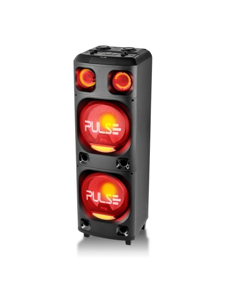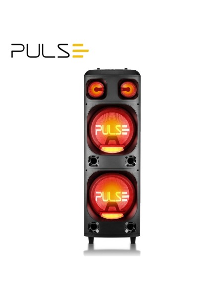 La torre de sonido Pulse SP1000 doble-15 4000W dispone de conexión Bluetooth, entrada auxiliar, tarjeta de memoria, USB y entrada FM. Cuente con 4000W de potencia en 2 subwoofers de 15 pulgadas 1 tweeter y 1 mid que aportan alta fidelidad al sonido. Los subwoofers brindan bajos mejorados y sin ruido a través de la función Megabass. ¡Los LED decorativos presentes en toda la caja hacen que tu TORRE esté lista para animar aún más tu fiesta! Escuche su lista de reproducción a través de la entrada auxiliar (AUX), tarjeta de memoria (SD), Bluetooth o conexión USB. Tiene entrada P10 y radio FM para escuchar tu emisora favorita. Asa resistente y ruedas para transportar.