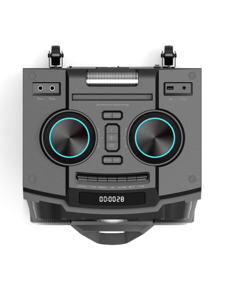 de potencia RMS y woofer de 10 pulgadas. Con esta configuración, puedes reproducir tu lista de reproducción favorita en casa o en una fiesta con todos los chicos.